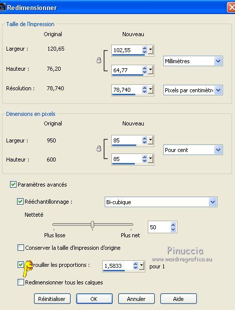 Image>Redimensionner, à 85%, redimensionner tous les calques décoché.