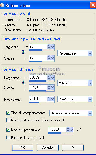 24. Immagine>Ridimensiona, all'80%, tutti i livelli non selezionato, ricampionamento dimensione intelligente.