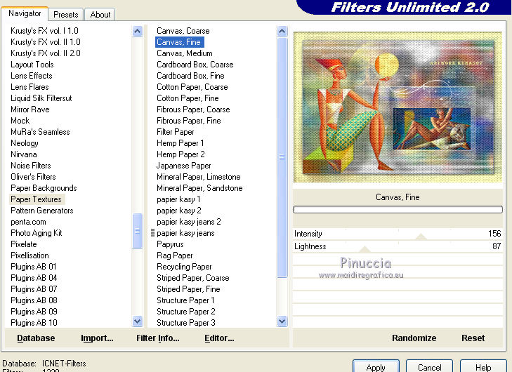33. Effetti>Plugins>Filters Unlimited 2.0 - Paper Textures - Canvas fine, con i settaggi standard.