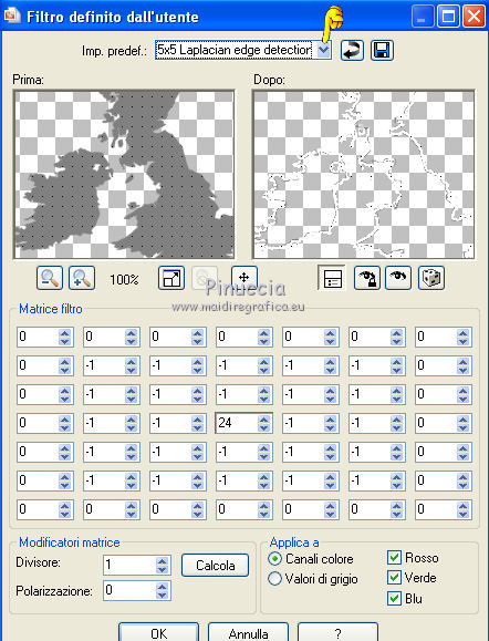 Seleziona il preset 5x5_Laplacian_edge_detect e ok.