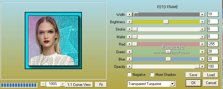 Effetti>Plugins>AAA Frames - Foto Frame, seleziona Transparent Turquois e imposta Width a 10