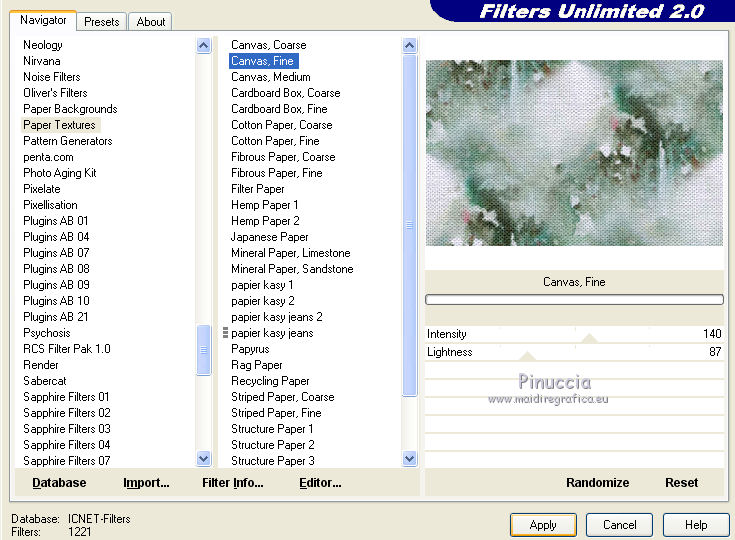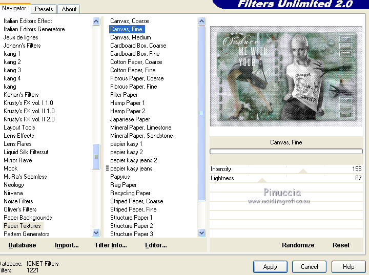 31. Effetti>Plugins>Filters Unlimited 2.0 - Paper Textures - Canvas Fine, con i settaggi standard.
