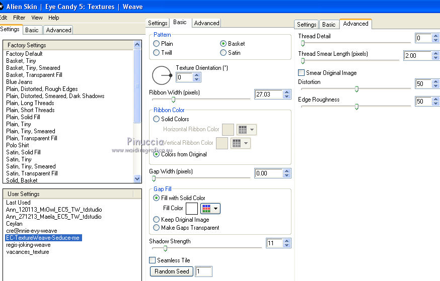 e Alien Skin Eye Candy 5 Texture>Settings>Weave.
