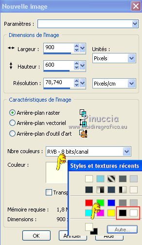 2. Ouvrir une nouvelle image, couleur d'avant plan, 900 x 600 pixels.