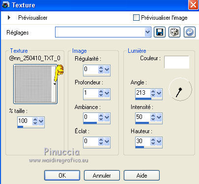 3. Effets>Effets de textures>Texture - sélectionner la texture @nn_250410_TXT_031_tdstudio, avec ces settages.