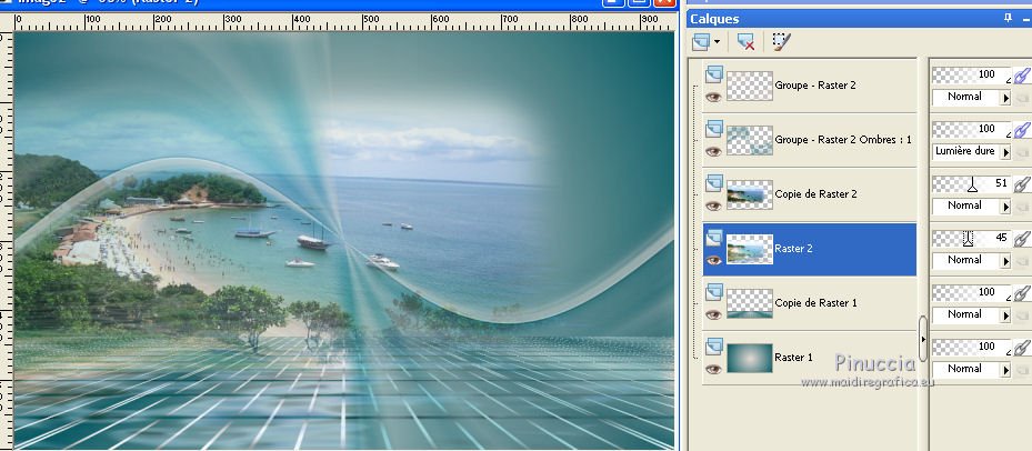 Vous positionner sur le calque de dessous de l'original - Raster 2.