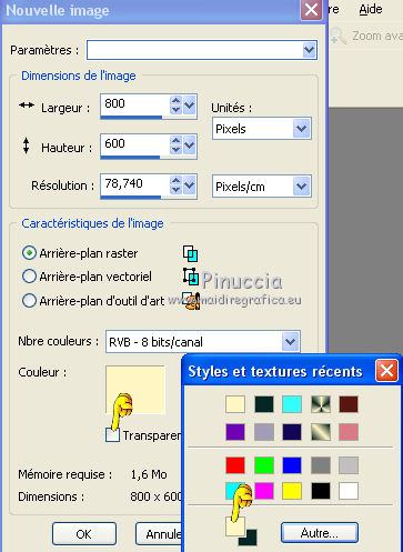1. Ouvrir une nouvelle image transparente 800 x 600 pixels, couleur d'avant plan.