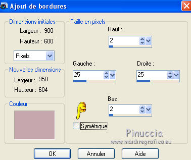 Image>Ajouter des bordures, symétrique décoché, couleur claire d'avant plan.