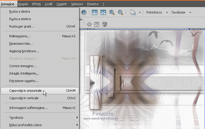 Dalla versione X4, il comando Immagine>Rifletti è stato sostituito con Immagine>Capovolgi in orizzontale,