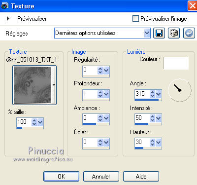 7. Effets>Effets de textures>Textures - Sélectionner la texture trama @nn_051013_TXT_144_tdstudio.bmp,