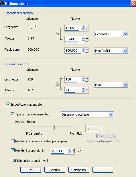 Immagine>Ridimensiona, 150 pixels di larghezza, tutti i livelli selezionato.