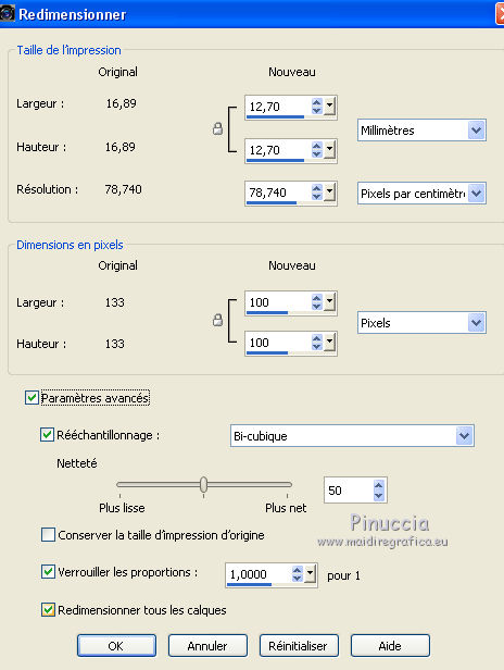 Image>Redimensionner, 100 x 100 pixels, redimensionner tous les calques coché.