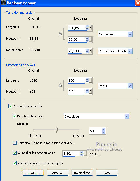 47. Image>Redimensionner, 950 pixels de largeur, redimensionner tous les calques coché.