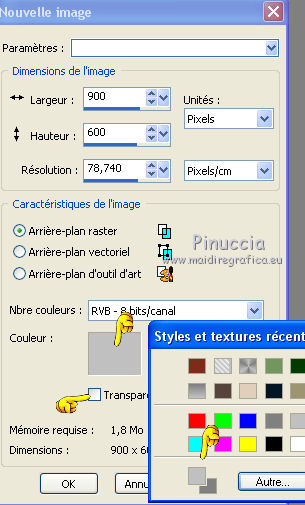 2. Ouvrir une nouvelle image 900 x 600 pixels fond couleur d'avant plan.