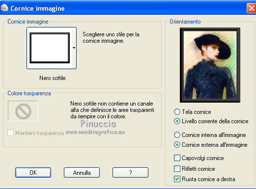 52. Immagine>Cornice immagine - seleziona la cornice Nero sottile (Corel_07_019 nelle versioni più recenti di PSP).