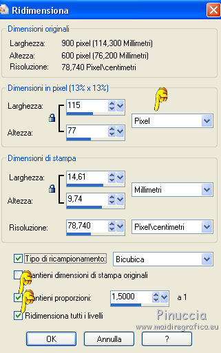 16. Immagine>Ridimensiona, a 115x77 pixels, tutti i livelli selezionato.