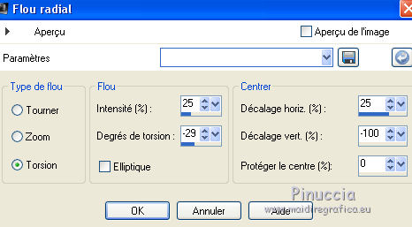 25. Réglage>Flou>Flou radial, comme précédemment.