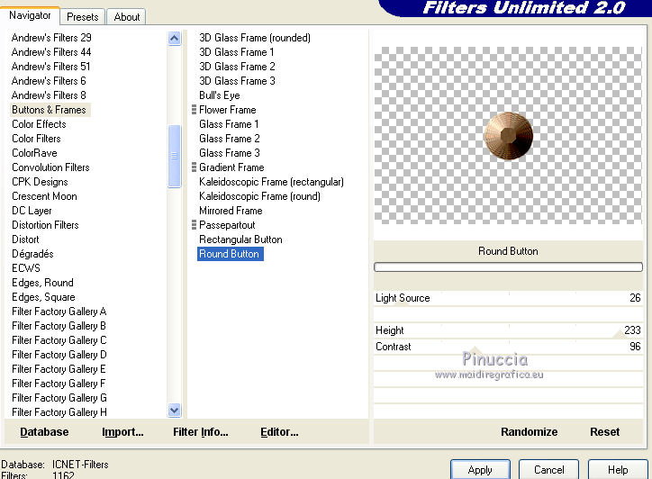 22. Effetti>Plugins>Filters Unlimited 2.0 - Buttons &Frames - Round Button.