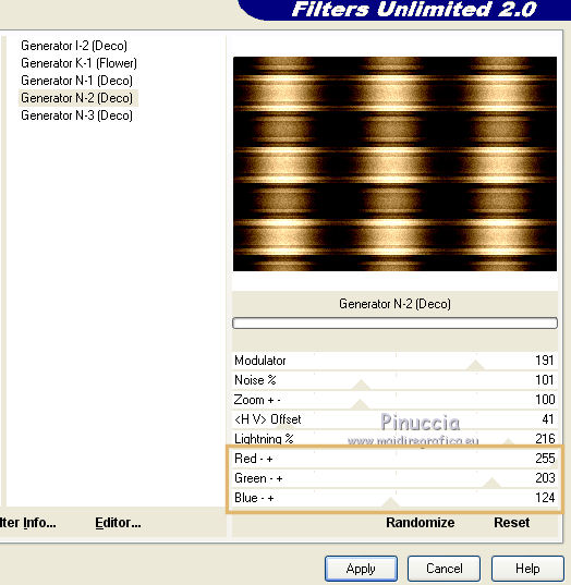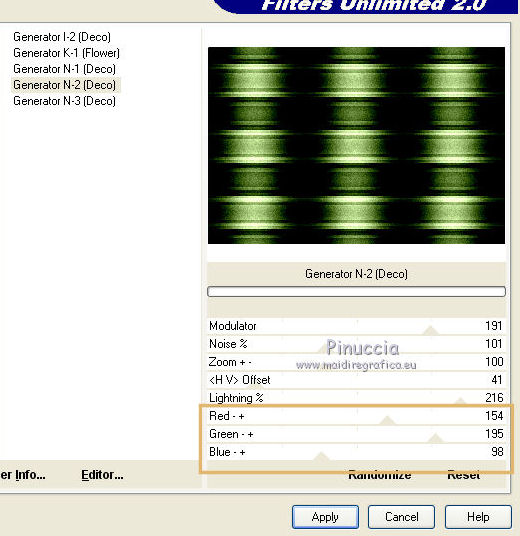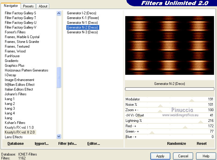 2. Effetti>Plugins>Filters Unlimited 2.0 - Krusty's FX vol. ll 2.0 - Generator N-2 déco.