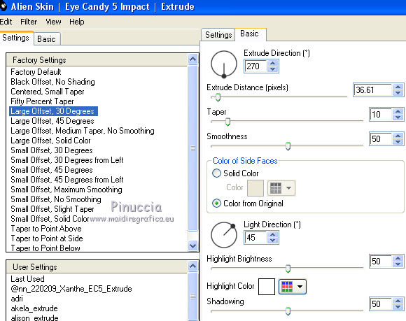 22. Effetti>Plugins>Alien Skin Eye Candy 5 Impact - Extrude.