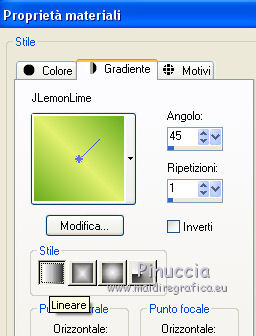 1. Passa il colore di primo piano a Gradiente e seleziona il gradiente "JLemonLime", con i seguenti settaggi.