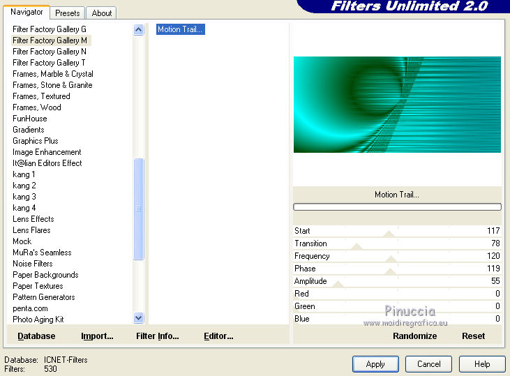 2. Effetti>Plugins>Filters Unlimited 2.0 - Filter Factory Gallery M - Motion Trail