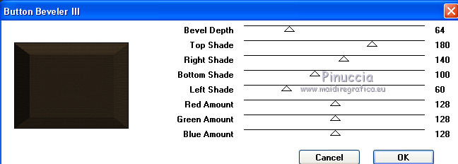 13. Effetti>Plugins>Graphics Plus - Button Beveler III, con i settaggi standard.