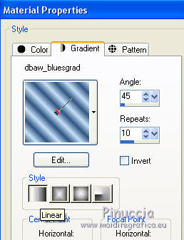 11. Set your foreground color to Gradient and select the gradient dbaw_bluesgrad, style Linear.
