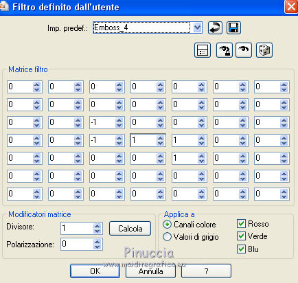 13. Effetti>Filtro definito dall'utente - seleziona il preset Emboss 4 e ok.