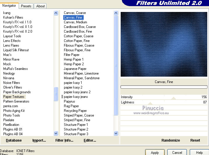 4. Effects>Plugins>Filters Unlimited 2.0 - Paper Textures - Canvas Fine, default settings.