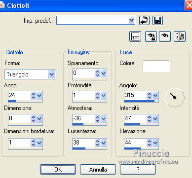 Effetti>Effetti 3D>Smusso a incasso, con i settaggi precedenti.