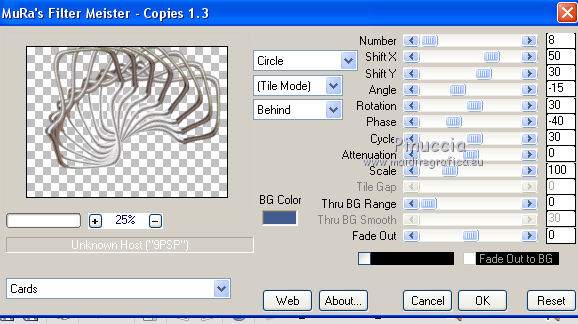 11. Effetti>Plugins>Mura's Miester - Copies - Cards, con i settaggi standard