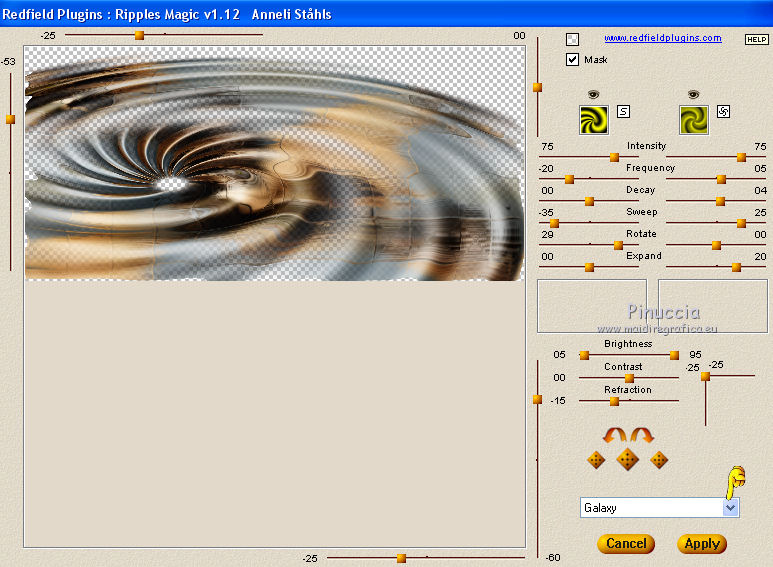 6. Effetti>Plugins>Redfield - Ripples Magic - Seleziona Galaxy e ok.