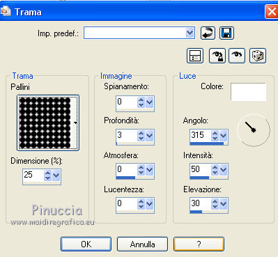 28. Effetti>Effetti di trama>Trama - seleziona la trama Pallini con i seguenti settaggi.
