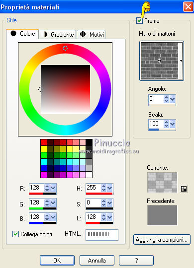 Cerca e seleziona la trama Muro di mattoni, con i seguenti settaggi.