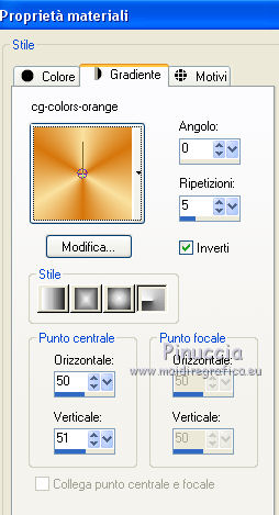 1. Passa il colore di primo piano a Gradiente, e seleziona il gradiente cg-colors-orange, con i seguenti settaggi.