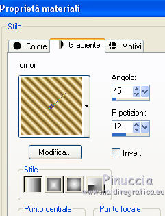 5. Passa il colore di primo piano a Gradiente, e seleziona il gradiente ornoir, con i seguenti settaggi.