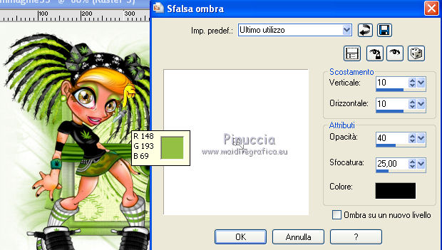 Effetti>Effetti 3D>Sfalsa ombra, con il colore verde scelto dal tube.