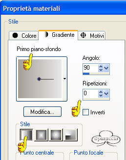 Passa il colore di primo piano a gradiente di primo piano/sfondo, con i seguenti settaggi:
