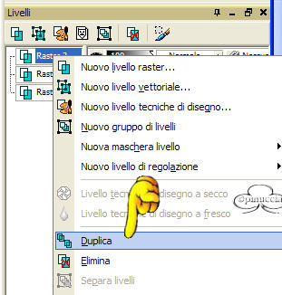 6. Nella paletta dei livelli clicca con il tasto destro del mouse sul livello Raster 3 e scegli Duplica.