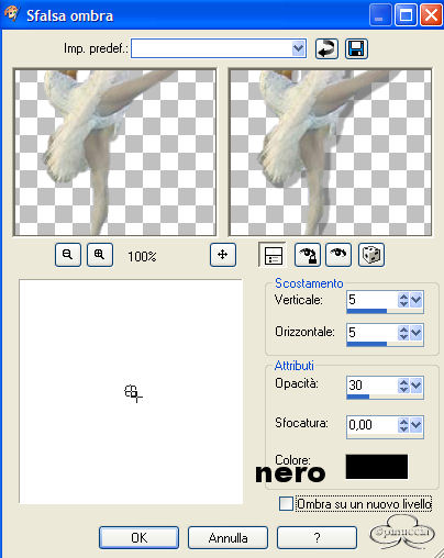 Effetti>Effetti 3D>Sfalsa ombra, con i seguenti settaggi, colore nero: