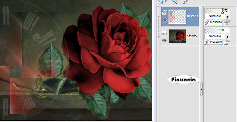 5. Nella paletta dei livelli abbassa l'opacità del livello Raster 1 intorno al 70/75%.