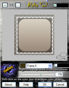 7. Effetti>Plugins>Plugin Galax7, Alpha Tool, con i seguenti settaggi: