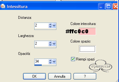 7. Effetti>Effetti di trama>Intessitura, con i seguenti settaggi: