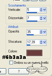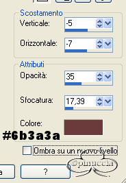 10. Effetti>Effetti 3D>Sfalsa ombra, con i seguenti settaggi, colore 6b3a3a.