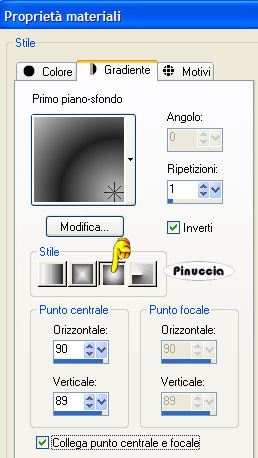 Passa il colore di primo piano a Gradiente di primo piano/sfondo, con i seguenti settaggi: