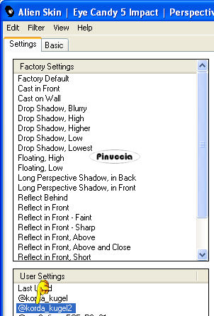 Metti le impostazioni predefinite @Korda_kugel2.f1s e @korda_kugel.f1s nella cartella Alien Skin Eye Candy 5 Impact>Settings>Shadow.