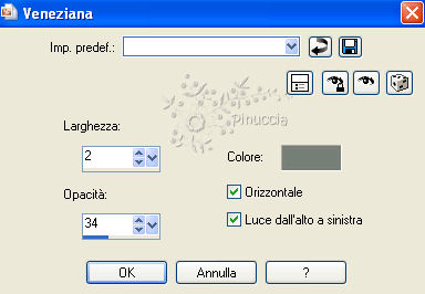 Effetti>Effetti di trama>Veneziana, con i settaggi precedenti, con il colore di sfondo.