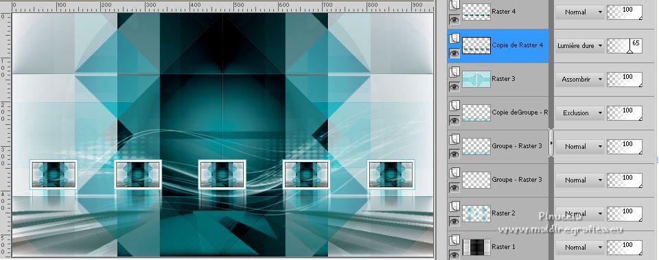 Placer le calque en mode Lumière dure et réduire l'opacité à 65%.