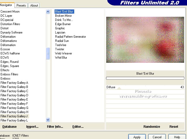 Effets>Modules Externes>Filters Unlimited 2.0 - Filter Factory Gallery J - Blast`Em! Blur, par défaut.